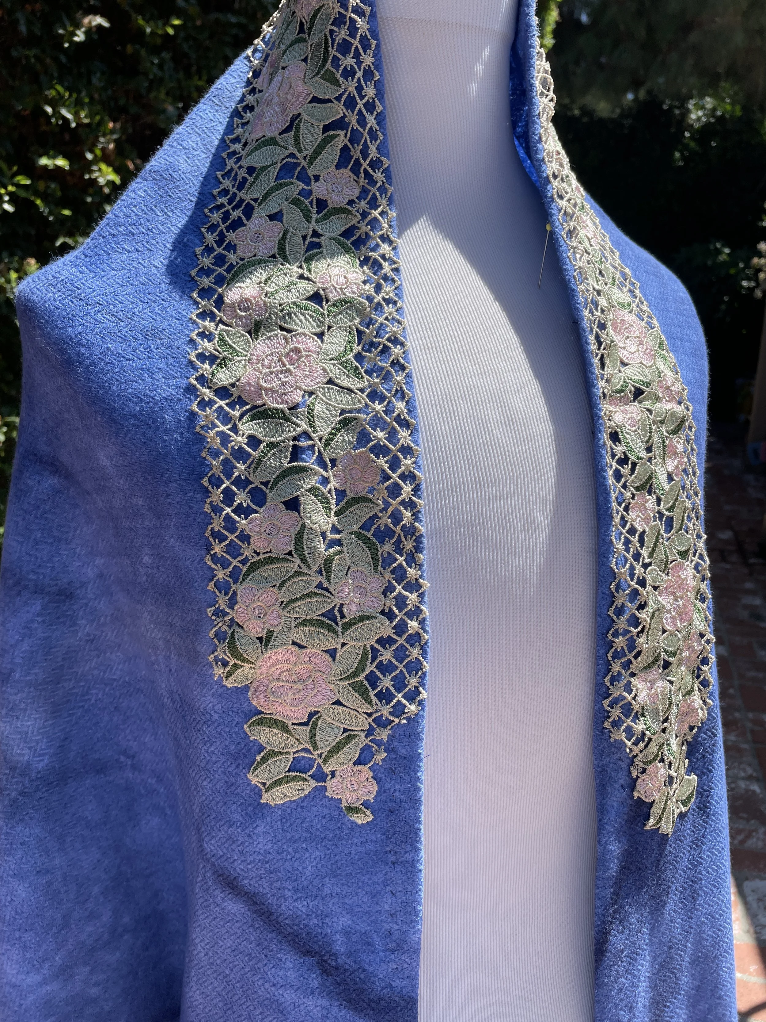 The sun is shining and everything is right in the world. The rich blue sky looms overhead, playful clouds poke through. You inhale deeply and exhale slowly. Life is good. Inspired by these feelings this very lovely 72” x 36” hand woven indigo tye dyed Turkish cotton tallit might be just what you are looking for. The lightness of the floral attarah embroidered in pink, white and lettuce green seal the deal. Only one of a kind!